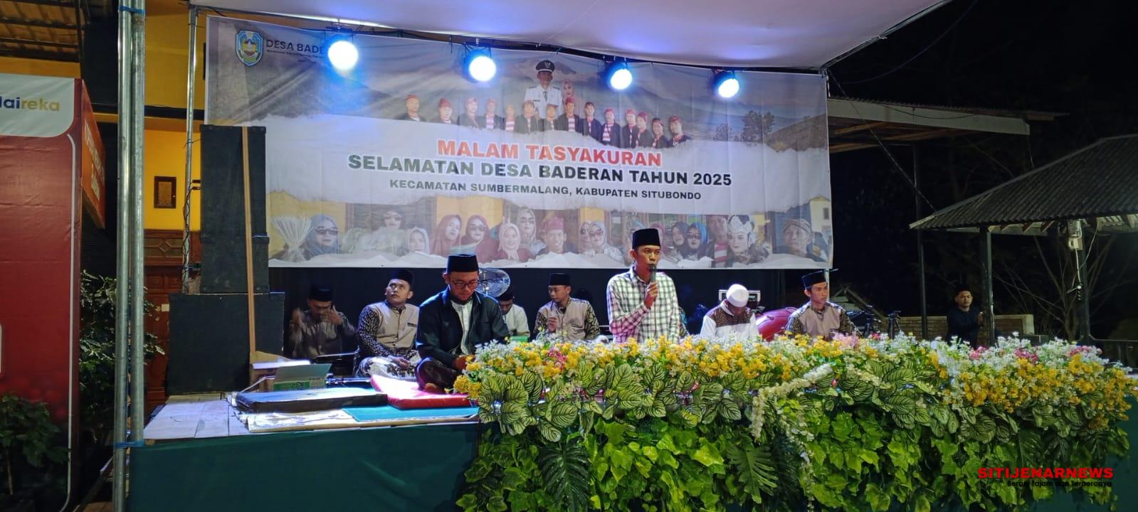 Sitijenarnews.com Sumbermalang, Situbondo – Kamis, 7 Agustus 2025: Dalam gelombang zaman yang terus berubah, masyarakat Desa Baderan, Kecamatan Sumbermalang, Kabupaten Situbondo, tetap teguh menjaga akar budayanya melalui pelaksanaan Selamatan Desa—sebuah tradisi sakral yang diwariskan secara turun-temurun dari para leluhur. Tradisi ini tidak hanya menjadi peristiwa budaya tahunan, tetapi juga merupakan penanda spiritualitas kolektif, rasa syukur, dan kebersamaan yang melekat kuat dalam kehidupan masyarakat desa.