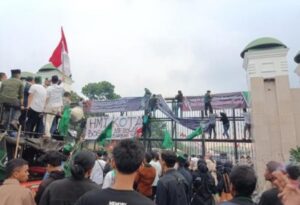 Pantauan Tim Awak media, terlihat massa membakar ban di depan gedung DPR dan MPR RI. Bahkan, beberapa diantaranya mencoba memanjat pagar gedung.
