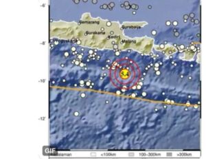 “Gempa Magnitudo: 5.4, Kedalaman: 10 km, 09 Jul 2022 03:27:07 WIB, Koordinat: 9.64 LS-112.91 BT (171 km BaratDaya LUMAJANG-JATIM), Tidak berpotensi tsunami,” terang BMKG melalui akun resminya.