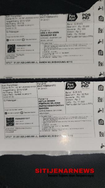 Ini Resi Pengiriman Surat laporan Ke DPP PKB Jakarta Dan DPW PKB di Surabaya.