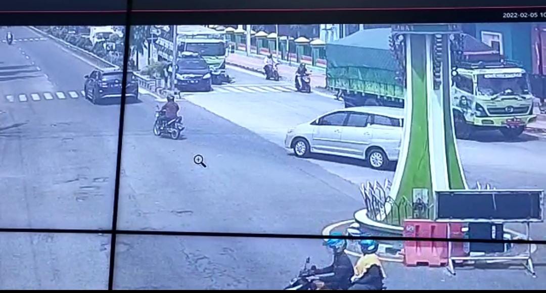 Setelah melintas di traffick light, sopir tronton hilang kendali dan langsung menabrak dua pemotor dan mobil Innova yang sedang berhenti menunggu lampu hijau nyala.