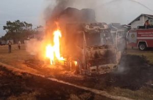 Kata dia, Truk itu dibakar oleh sejumlah massa yang mengaku dari masyarakat petani.