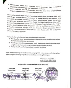 Adapun isi dari SK tersebut yakni SK SK.287/MENLHK/SETJEN/PLA.2/4/2022 tentang Penetapan Kawasan Hutan Dengan Pengelolaan Khusus Pada Sebagian Hutan Negara Yang Berada Pada Sebagian Hutan Produksi Dan Hutan Lindung Di Provinsi Jawa Timur, Jawa Tengah, Jawa Barat, dan Banten.