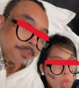 Keduanya tampak saling menempel dan menjulurkan lidah.