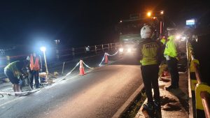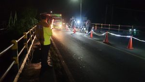 Sitjenarnews.com Besuki Situbondo Jatim Jum’at 16 Desember 2022: Perbaikan Jembatan Lubawang yang berada di JL.Raya Banyuglugur Besuki Kab.Situbondo Mengakibatkan Kemacetan hingga beberapa Kilometer malam ini.