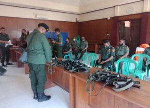 Sitijenarnews.Com BANYUWANGI. kamis 14 April 2022 – Perhutani KPH Banyuwangi Utara mendapat tambahan senjata api dari Polda Jawa Timur. Ada sekitar 21 pucuk senjata api yang dipinjamkan untuk menjaga hutan di area Banyuwangi.