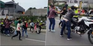 Polisi memakai motor masuk ke tol berusaha mengurai kepadatan lalu lintas. Akan tetapi, massa yang marah mengadang polisi dan melakukan pengeroyokan.