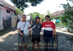 Tim Resmob Juga Menyita Beberapa Barang Bukti diantaranya: 1 (satu) Bilah senjata tajam Bentuk Pedang panjang 70cm gagang terbuat dari besi dililit ikat tali hitam kuning.