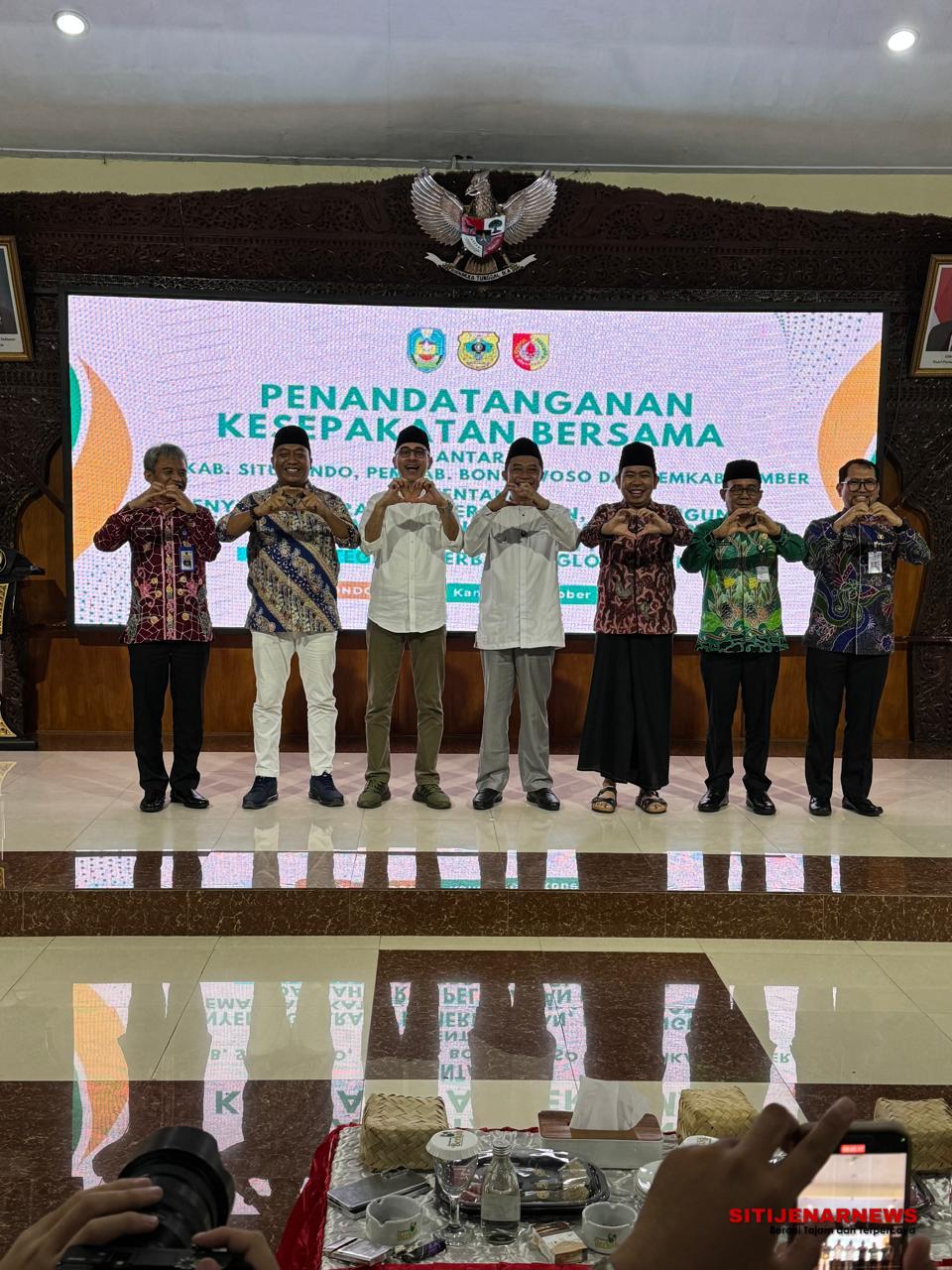 Acara yang berlangsung khidmat dan penuh semangat kebersamaan itu turut disaksikan oleh Anggota Komisi VI DPR RI Dapil Jawa Timur III, Nasim Khan, yang menyampaikan dukungan kuat atas inisiatif tiga bupati tersebut.